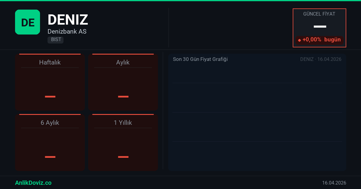AnlikDoviz.co piyasa verilerine göre, DENIZ hissesi için yıllık performans verileri hazırlanıyor.