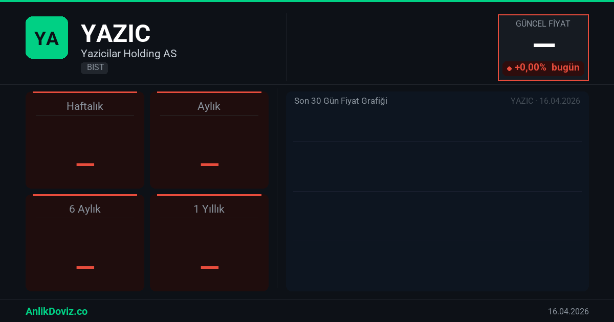 AnlikDoviz.co piyasa verilerine göre, YAZIC hissesi için yıllık performans verileri hazırlanıyor.